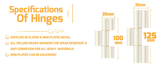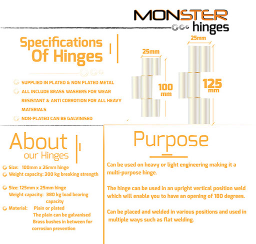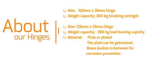 The heavy duty hinges are made from steel with a self lubricating brass spacer